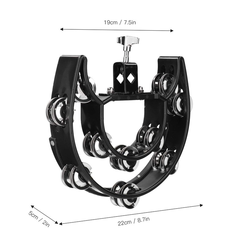 PLLO Hi Hat Tambourine - Hi Hat Bell for Drummers Guitarists - Drum Set Half Moon Tambourine with Mounting Eye Bolt - Jingle-Hit Tambourine - Double Row Percussion - Rattle - 40 Steel Bells
