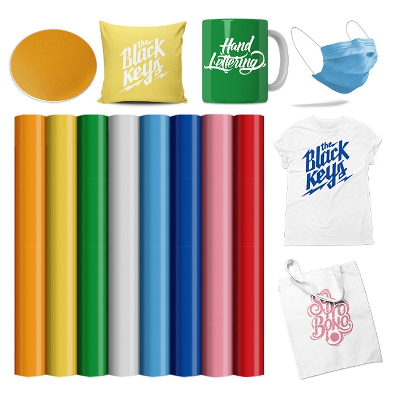 Discover the versatile possibilities of our high-quality plotter film textile. This 10 rolls of flex film plotter textile is perfect for creative projects such as personalised T-shirts, individual gifts and promotional items. The iron-on film plotter is easy to cut and transfer, making it ideal for DIY enthusiasts and small businesses.