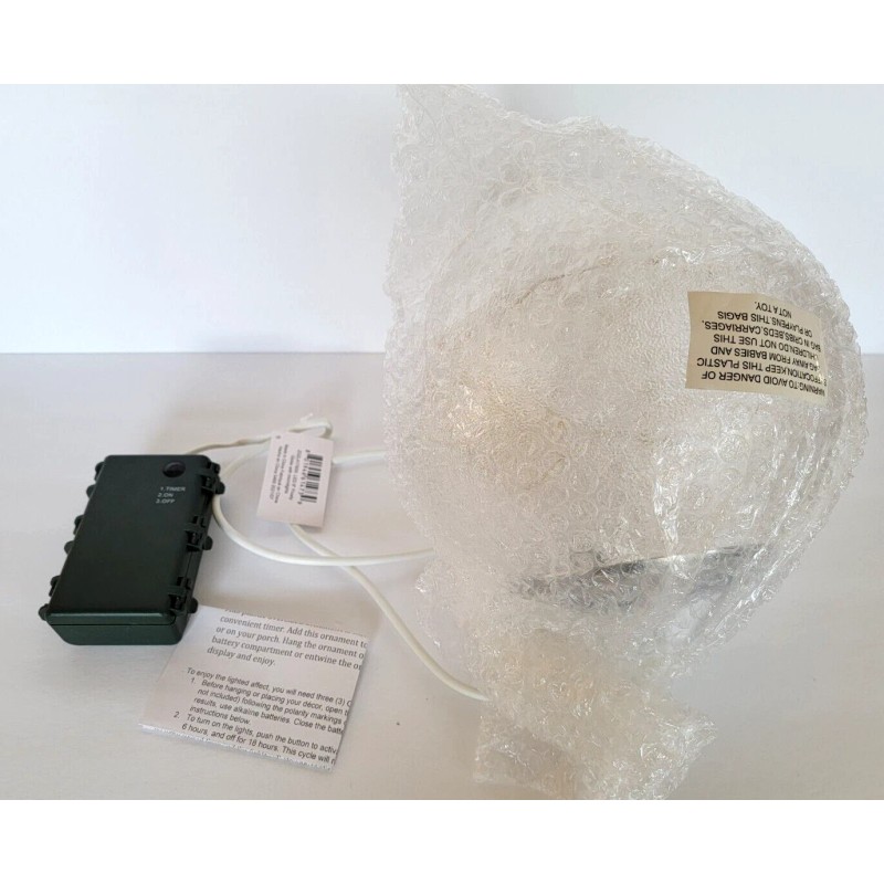 Plow & Hearth 8" Frosted Lighted Globe Hanging Decor Indoor Outdoor w/ Timer