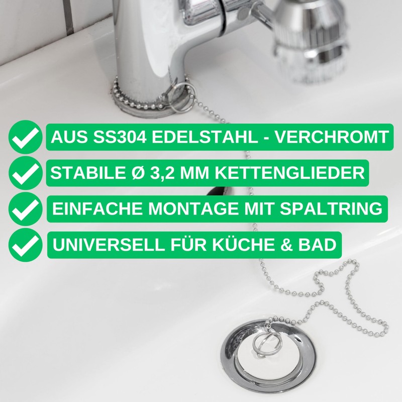 - Universal use – ideal for sinks and sinks: The plug chains can be used in the home, office, workshop or company – the 60 cm length is recommended for bathtubs, shower trays and kitchen sinks.