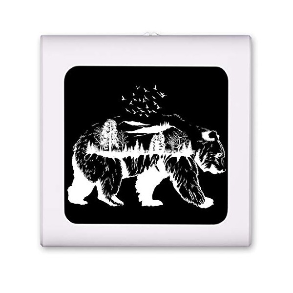 Plug in Dimmable LED Night Light with Dusk to Dawn Auto Sensor, Adjustable Brightness, Warm Light, Auto On/Off Nightlight for Bathroom, Hallway, Nursery, Bedrooms - Bear Outline