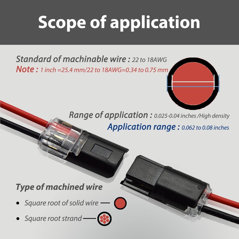 • Wide Application: Our wire connectors are perfect for a wide range of applications, including vehicle, audio, video, speaker, and LED strip light installations, as well as other electrical equipment. They are compatible with various types of wires, including solid, strand, and flexible wire.