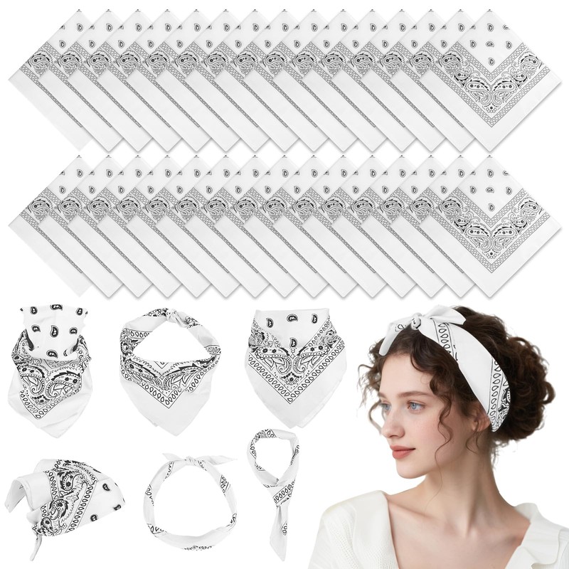- Great value pack: 30 pack white paisley print bandanas. The headscarf can be matched with various fashionable clothing for men and women