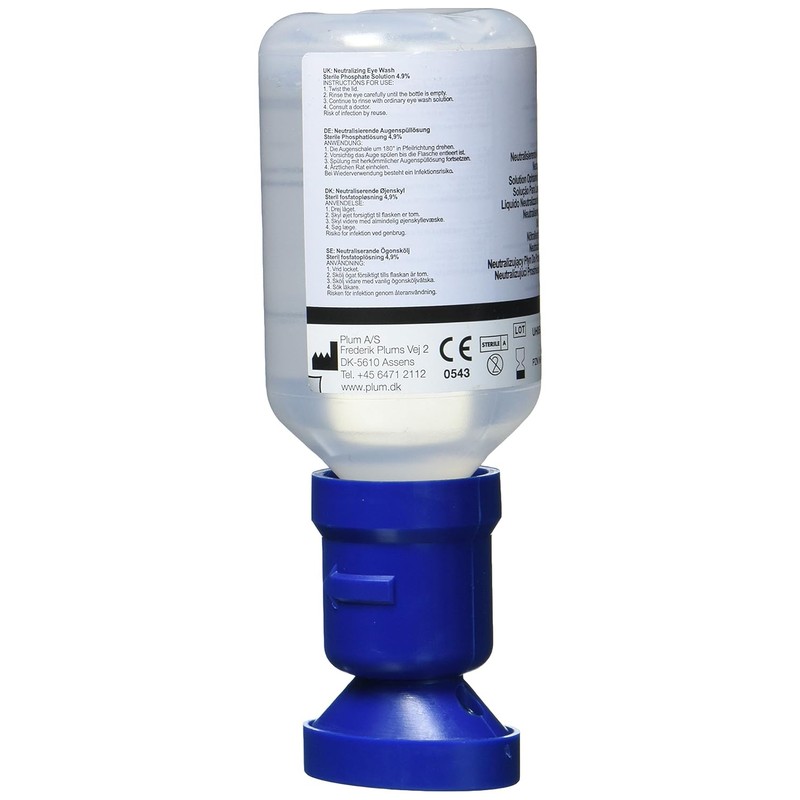 200 ml eye wash bottle pH neutral with sterile phosphate buffer solution (4.9%) for quick neutralisation of acids and alkali. With ergonomically shaped eye cup and dust cap. Also suitable for refilling eye emergency stations. Rinse time approx. 2 minutes. Conforms to DIN EN 15154-4. Unopened for 3 years.
