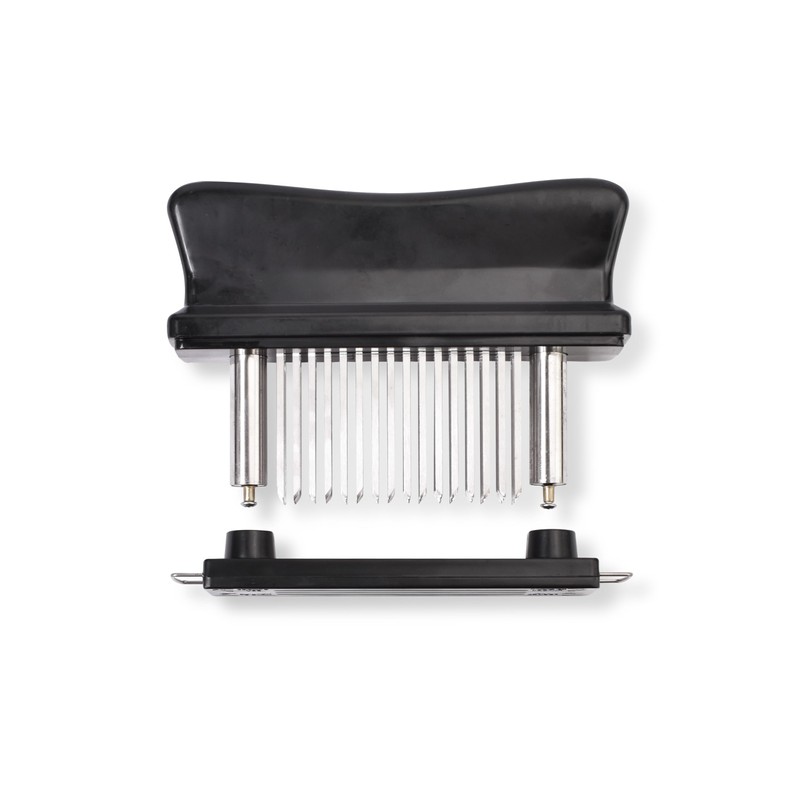 The high-quality stainless steel construction ensures that the blades remain sharp and effective even with regular use, providing consistent results every time. The ergonomic non-slip handle in black offers a comfortable grip, making it easy to press the blades into any type of meat, regardless of thickness.