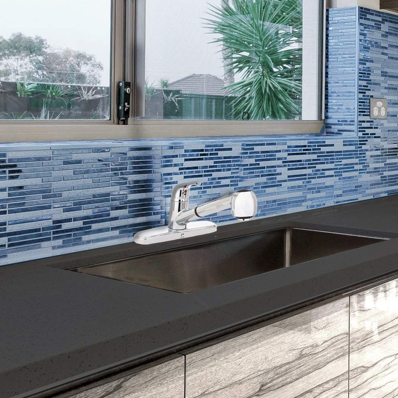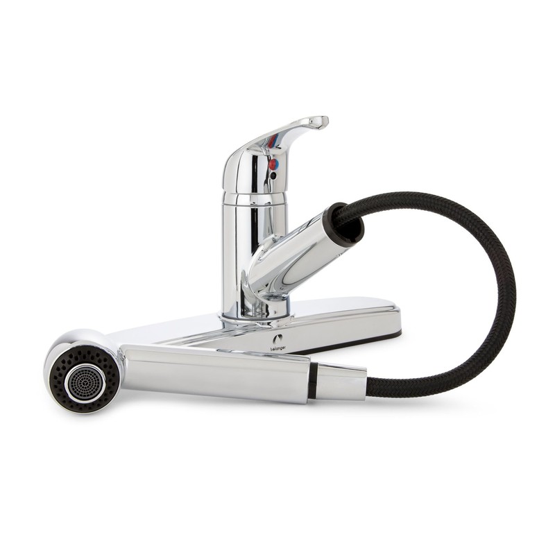 - Includes pull-out spray head. Great for reaching hard to reach areas of the sink and cleaning pots and pans