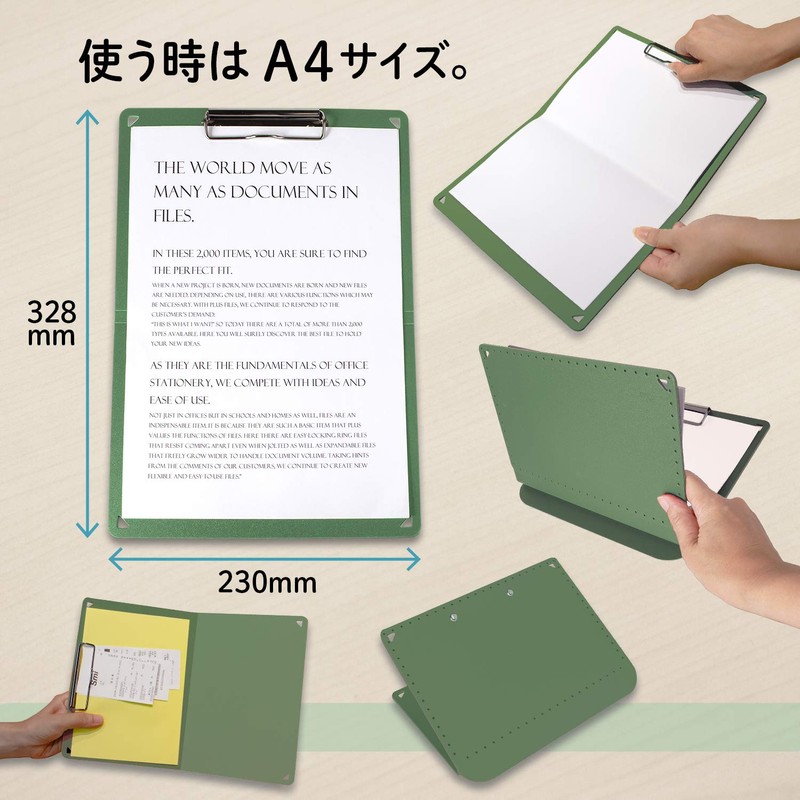 • Set Contents: Foldable clipboard A4, Khaki: 1, Dedicated strap: 1