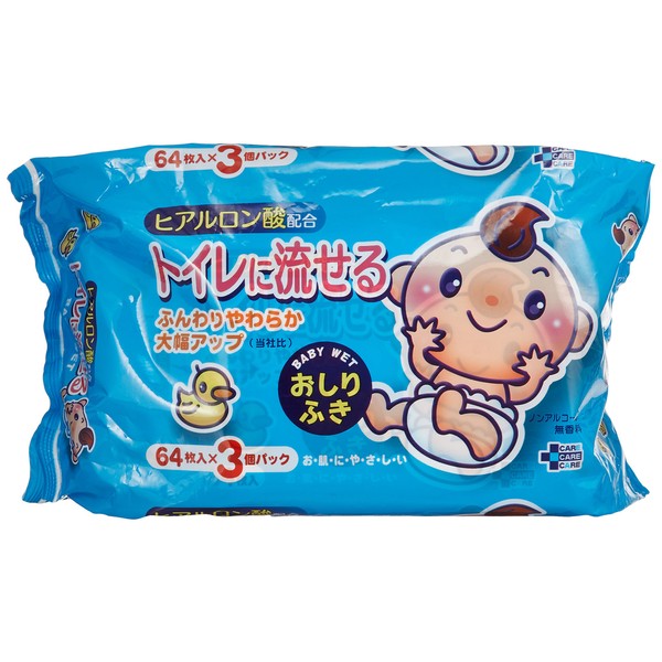 Plus Care Toilet To Flow Baby's Butt Wipe 64 Sheets x 3 Pack