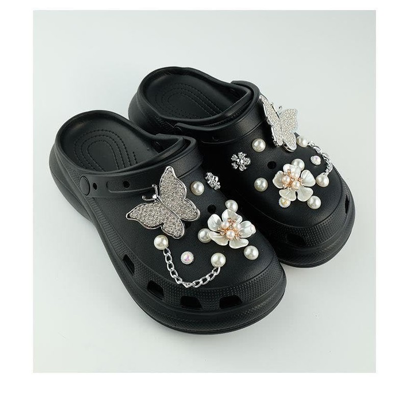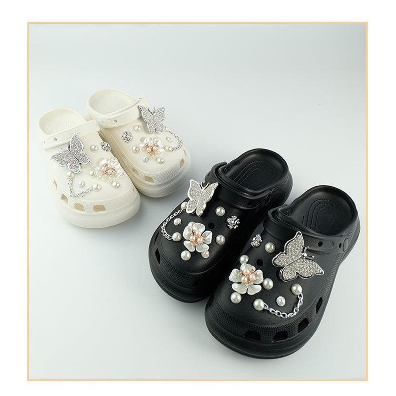 - Women's Shoelace Set, For Crocs, Pearlized Butterfly, Flowers, Chains, Accessories, Fashionable, Cute