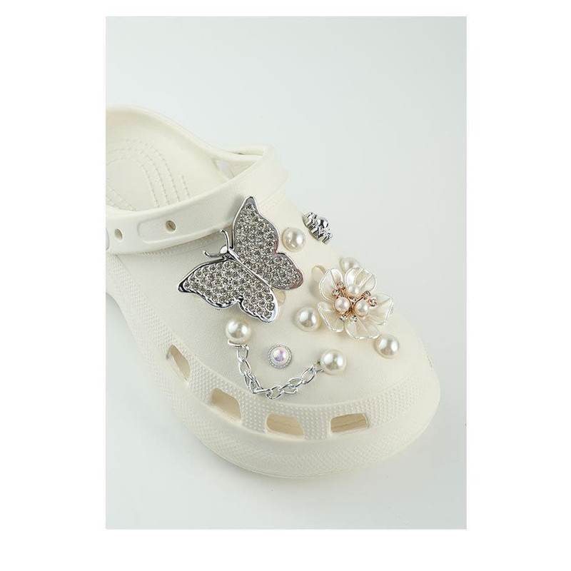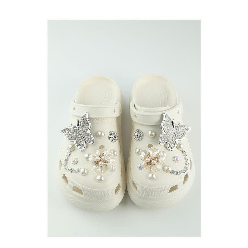 Plus Nao Shoe Parts Set, For Crocs, Shoe Accessories, Women's, Pearlized Butterfly, Butterfly, Flower, Chain, Ack, Pearl