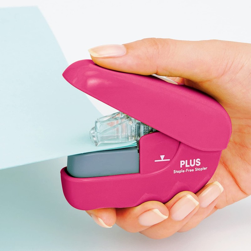 Plus No Needle Stapler Paper Clinch Pink Set of 5