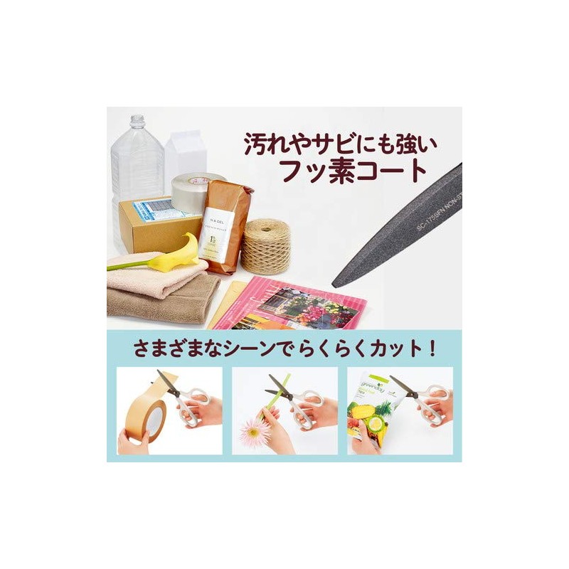 The fluorine resin coating prevents adhesive tape and glue from stickiness, and maintains a smooth and sharp edge. It is also highly resistant to dirt and rust, making it ideal for use around the water.