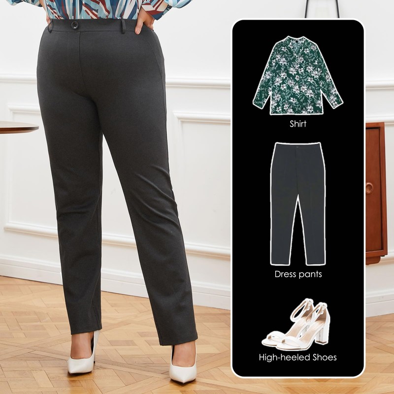 Plus Size Women's Straight-Leg Dress Pants - Slacks for Business Casual,Work Clothes for Office Grey-D 2XL