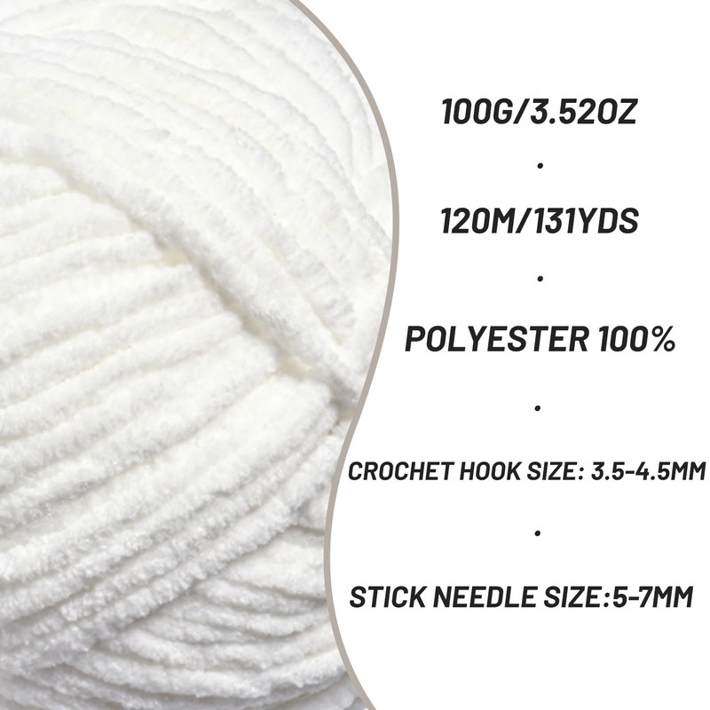 - Omoiut Chenille Yarn: This crochet yarn is made of 100% high quality polyester material, soft and delicate, fluffy and smooth, warm and full of life. Yarn weight per skein: 100g/3.53 oz ; length: 120 m/131 yds, suitable for crochet size: 3 mm-5 mm, knitting size: 5 mm-7 mm.