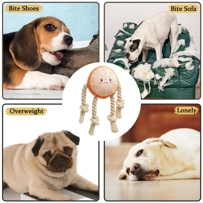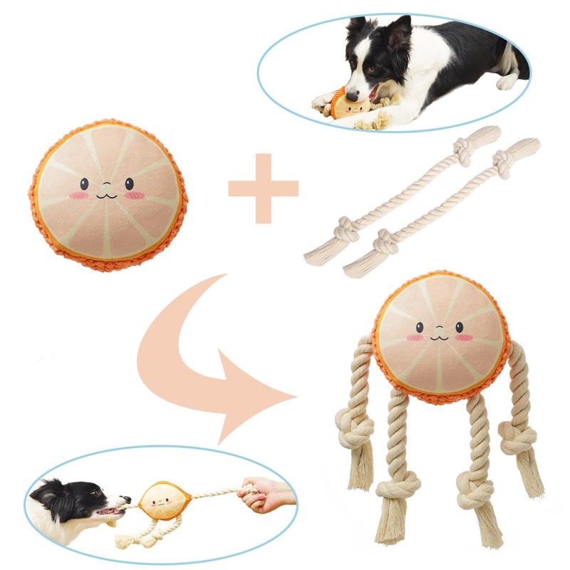 Plush Dog Toys with Squeakers,Medium Dogs Plush Toy - with Braided Rope Cute Fruit Design Interactive Dog Chewing Toys Cute Fuit Design