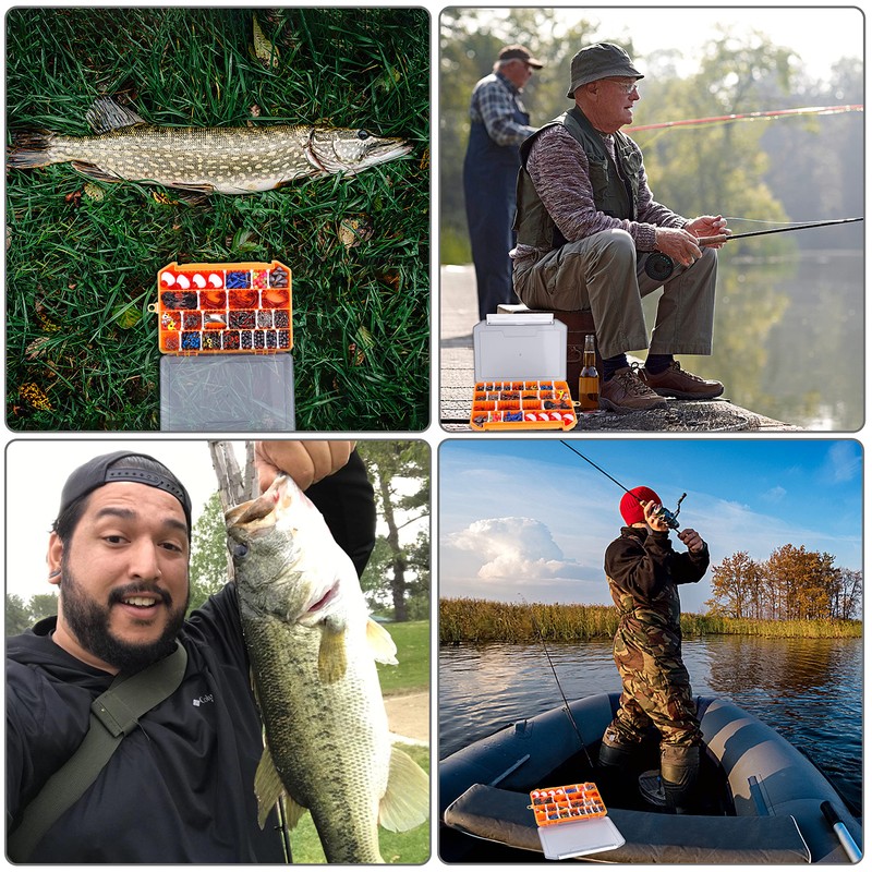 - 【Large Organized Tackle Box】- The PLUSINNO fishing tackle set features a large, organized tackle box to keep all your fishing accessories in order. The selector side by side tackle box allows easy classification and storage of fishing stuff. Each accessory has its grid with a cover for easy identification and access. This tackle box kit stores hooks, sinkers, swivels, lures, and other essential fishing equipment ensuring easy access and a stress-free fishing experience.