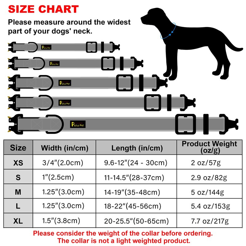 - Variety of Colors and Sizes. Available in a range of colors and sizes, our tactical dog collar offers options to suit every style and breed, from samll medium to large dogs.