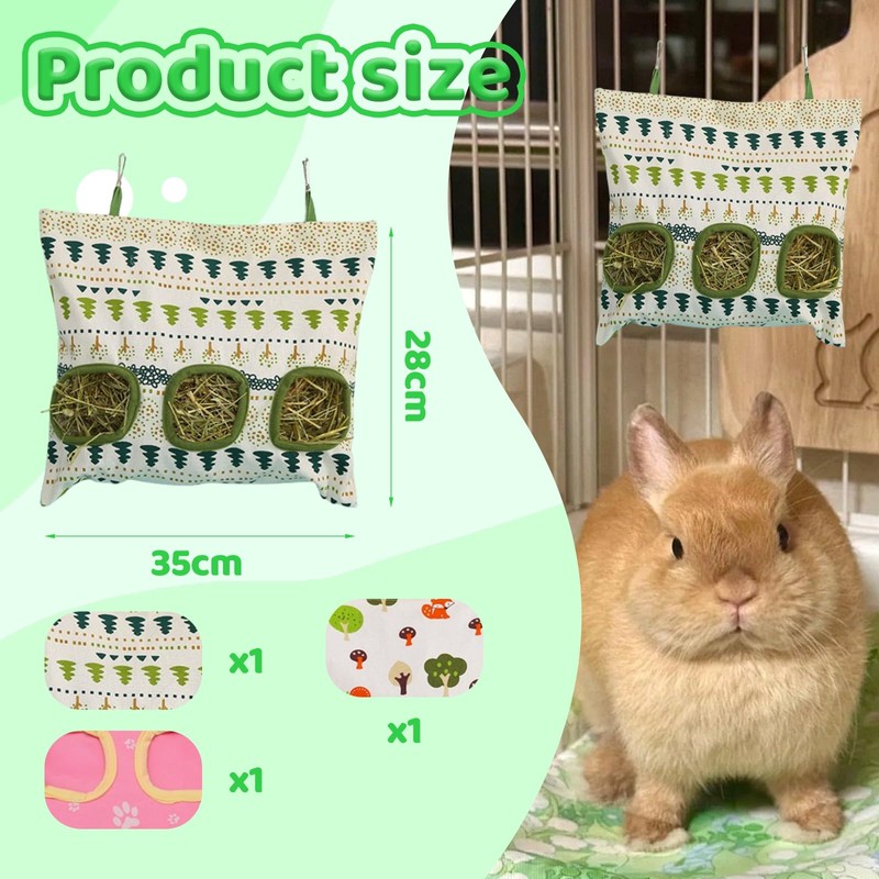 - Description of the package contents: you will receive 3 hay bags for rabbits with different patterns. These hay rack rabbits can not only help maintain a dry and clean environment, but also add colourful colours to your pet's everyday life and give your pet more joy.