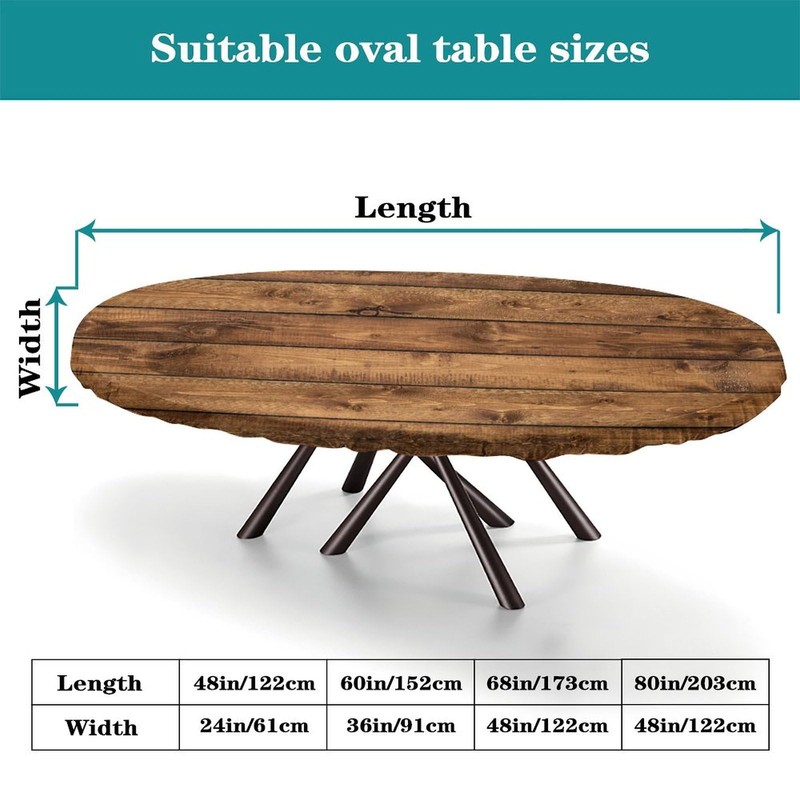 - Perfect Size: There are 4 sizes of tablecloths for you to choose from. The oval elastic edge design can be easily installed aOval a Oval table of any diameter. You can take a few seconds to measure the size of the table, so as to avoid the hassle of return and exchange.