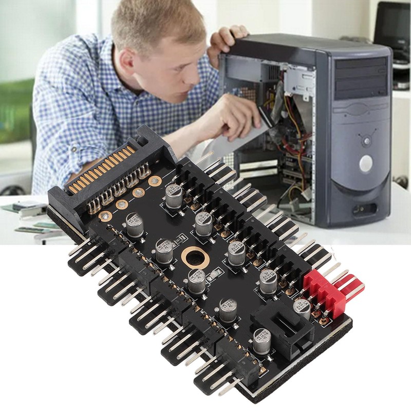 Plyisty PC Case Fan Hub, CPU Fan Hub, PC 10 Port 12V with 4 Pin Fan Connector, PWM Function, Temperature and Speed Control