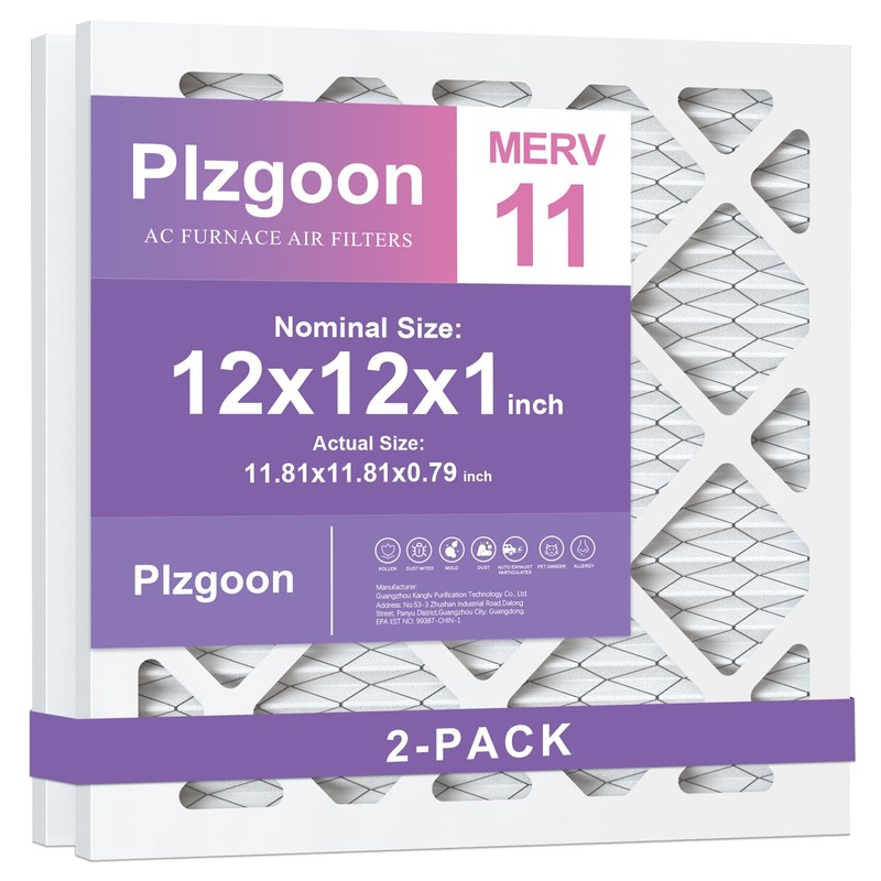 - 12x12x1 Air Filter: (Actual Size: 11.81 x 11.81 x 0.79 in) Plzgoon MERV 11 air filter ensures your home HVAC system runs efficiently, providing better heating, ventilation, and air conditioning.