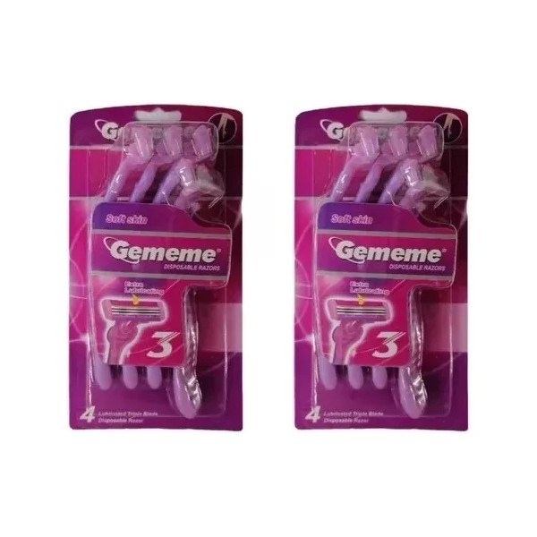 2 pack de rastrillos desechables para mujer con hojas de acero inoxidable y banda lubricante.