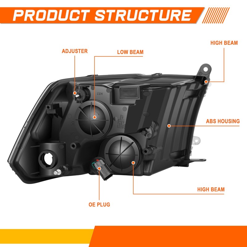 - 【Vehicle Compatibility】Headlights Assembly Compatible with Dodge Ram 1500 2009-2010, Dodge Ram 2500 2010, Dodge Ram 3500 2010, Ram 1500 2011-2012, Ram 2500 2011-2012, Ram 3500 2011-2012, Fits Models with Quad Beam Halogen Headlights