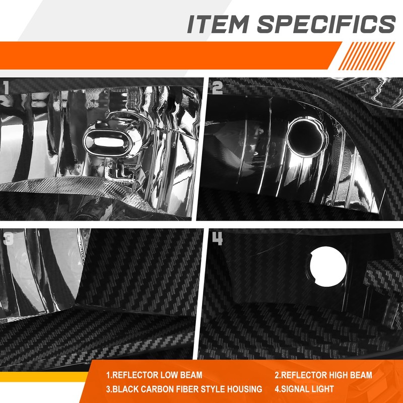 - 【Product Specification】Lighting Technology: Halogen | Bulb Model: 9005 High / H11 Low | Lens Color: Clear Lens / Amber Reflector | Housing Color: Carbon Fiber Pattern | OEM Part Number: 68001485AH 68001484AH | Partslink Number: CH2518135 CH2519135