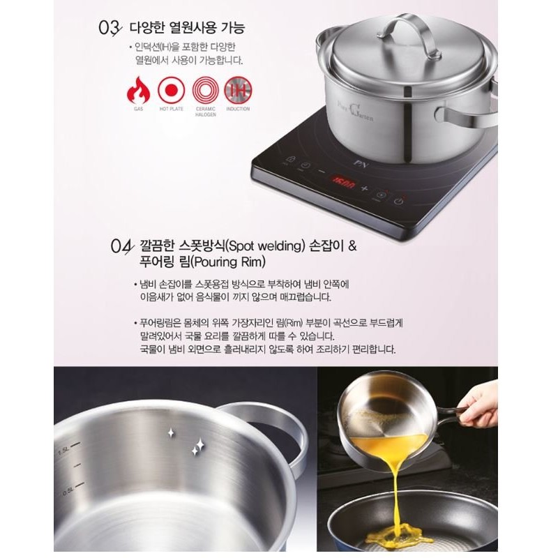 - texture: Body - Stainless steel 5PLY (STS304+AL1050+AL3003+AL1050+STS430), Lid - Stainless steel STS304,