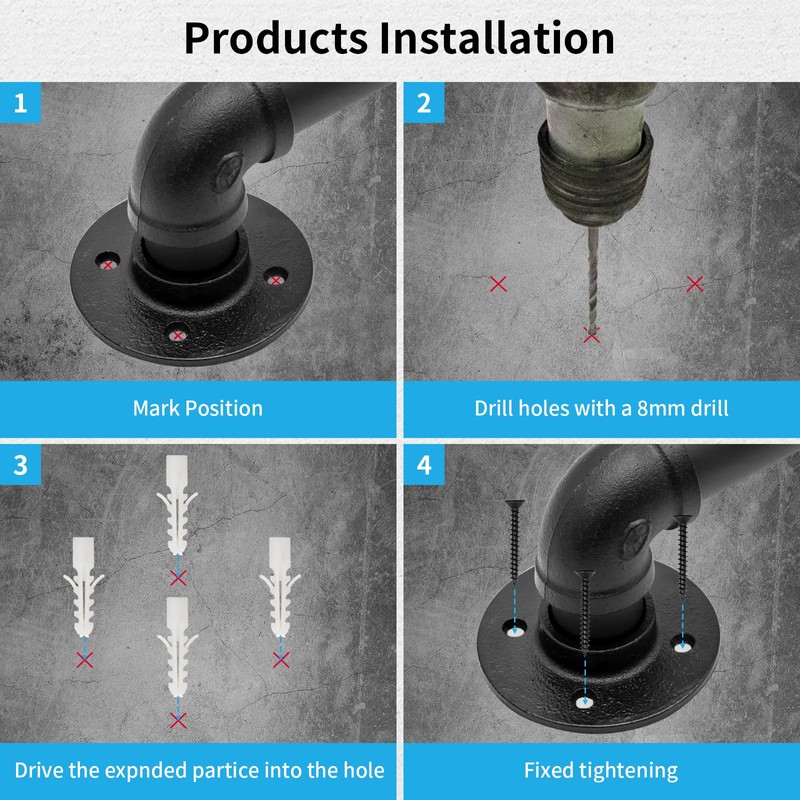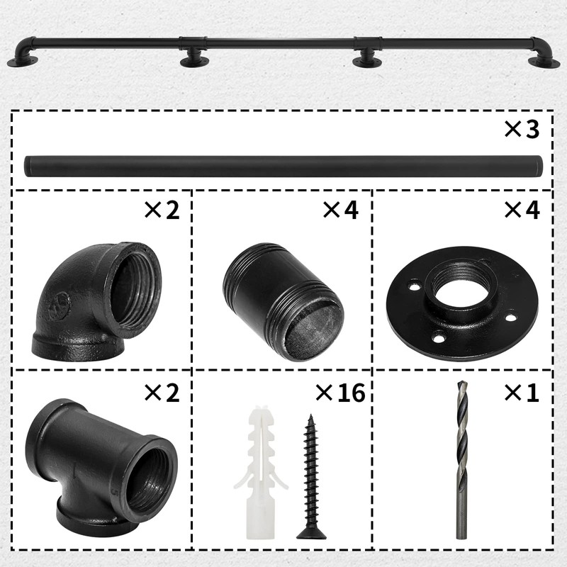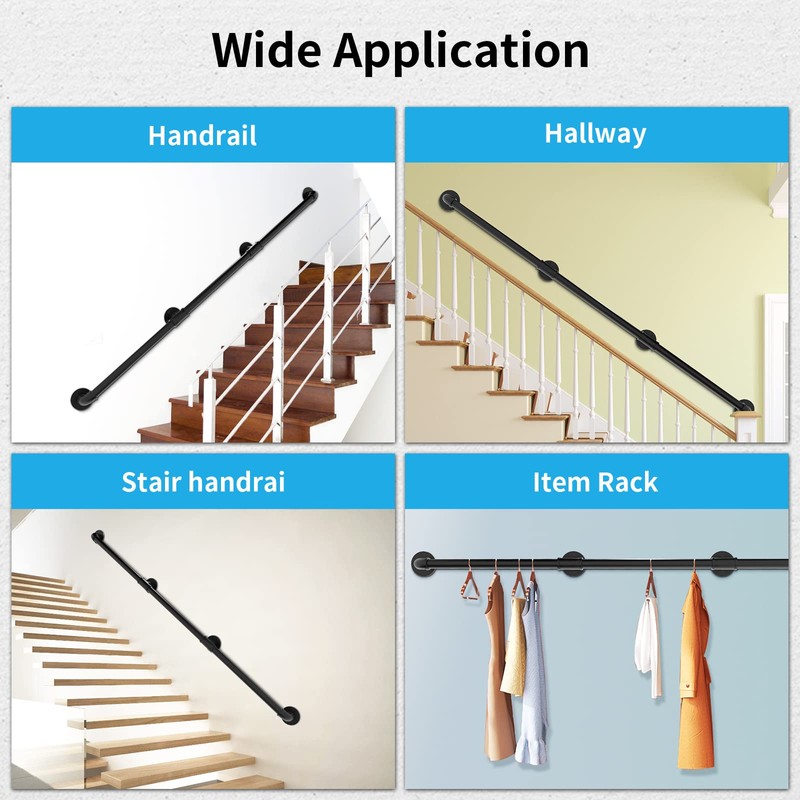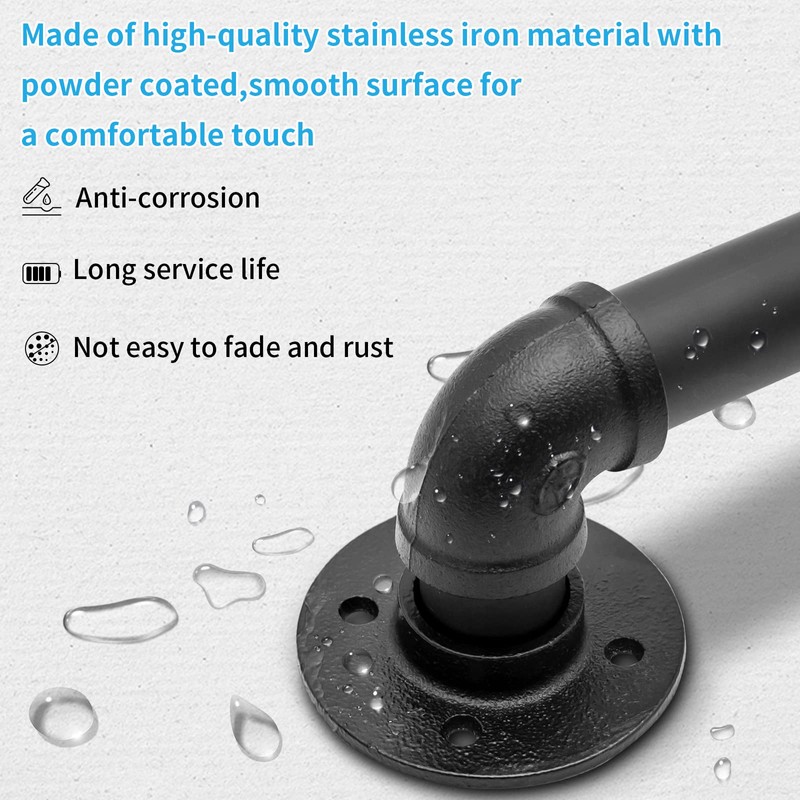 • 9FT Pipe Stair Handrail: Made of high quality galvanized pipe with unique black powder coating, anti-corrosion and waterproof, not easy to fade and rust, long service life. The surface is smooth and flat to prevent you from being cut in the process of use. The integrated corner design makes the appearance look more concise and clear. And include a variety of sizes for your choice.
