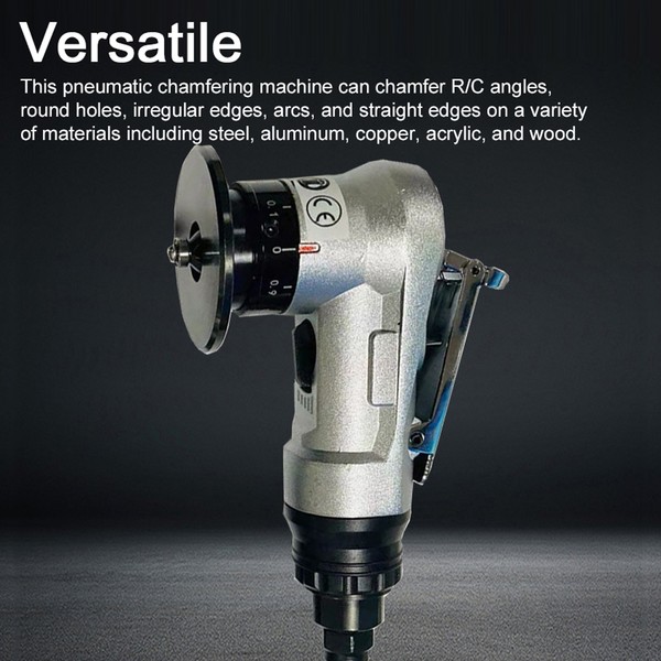 Versatile: This pneumatic chamfering machine can chamfer R/C angles, round holes, irregular edges, arcs, and straight edges on a variety of materials including steel, aluminum, copper, acrylic, and wood.