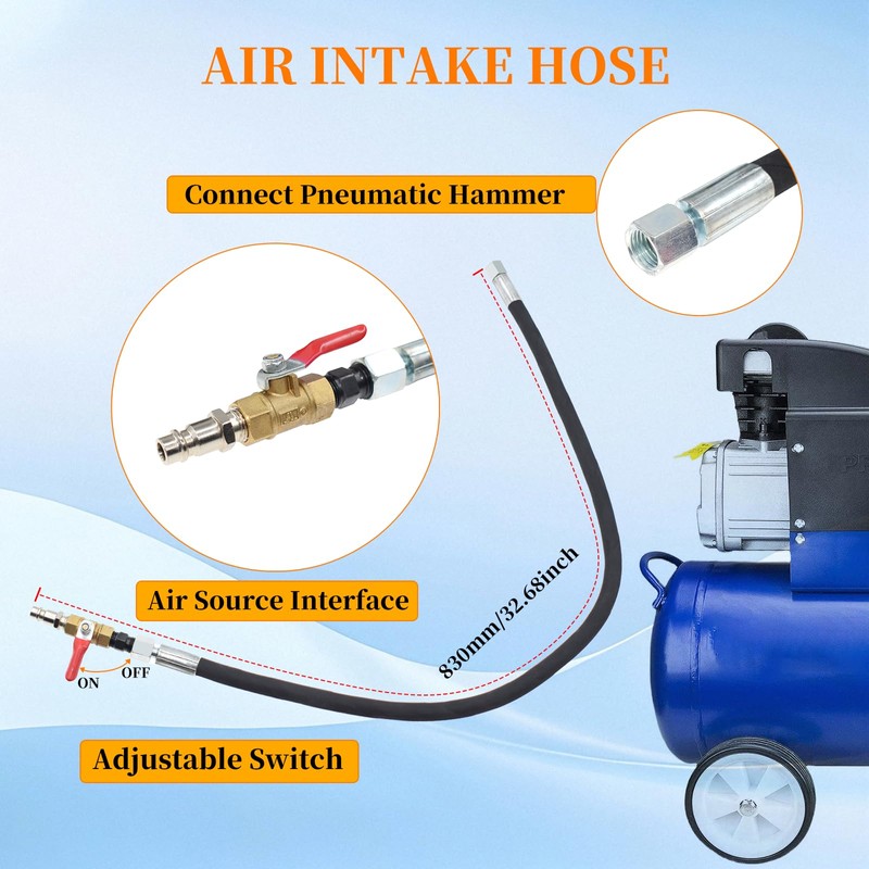 - Easy and Efficient: Manually removing stubborn diesel injectors is usually difficult. But this kit comes with a pneumatic hammer, which creates rapid vibrations on the injector, delivering greater power to help release the connection between the injector and engine block, making removal easier. It also includes an air intake hose with an adjustable switch, which controls air intake to adjust the hammer’s vibration speed.