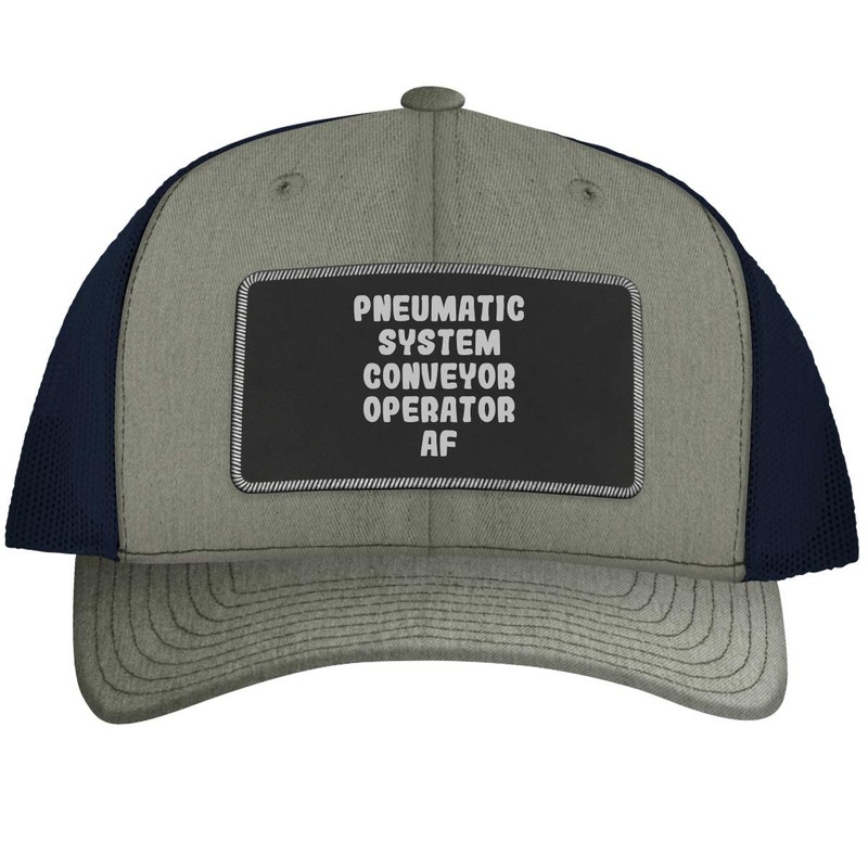 Pneumatic System Conveyor Operator AF - Leather Black Patch Engraved Trucker Hat, Heather-Navy, One Size