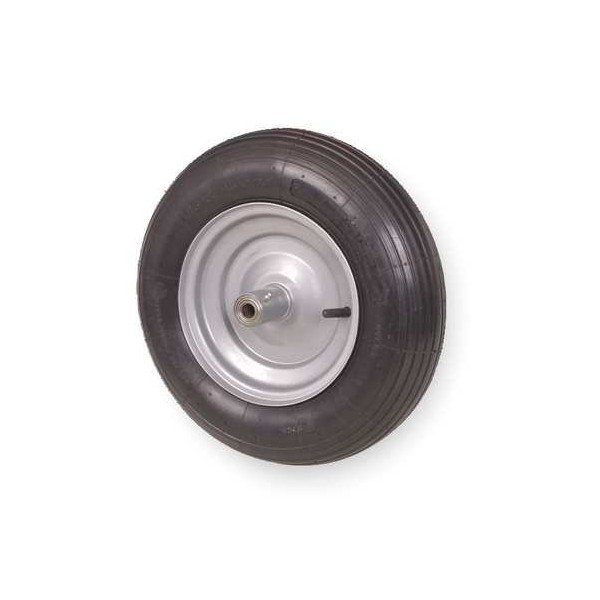 - Price For: Each Wheel Bearings: Ball Frame Finish: Powder Coated Hub Material: Steel Hub Color: Silver Includes: Spanner 3/4" to 5/8" Item: Pneumatic Wheel Tread: Ribbed Hub Type: Symmetrical Ply: 2 Tread Color: Black Tire Thickness: 4" Tire Rim Dia.: 9" Hub Width: 6" For Use With: Wheelbarrow and Cart Tires Fits Axle: 3/4", 5/8"