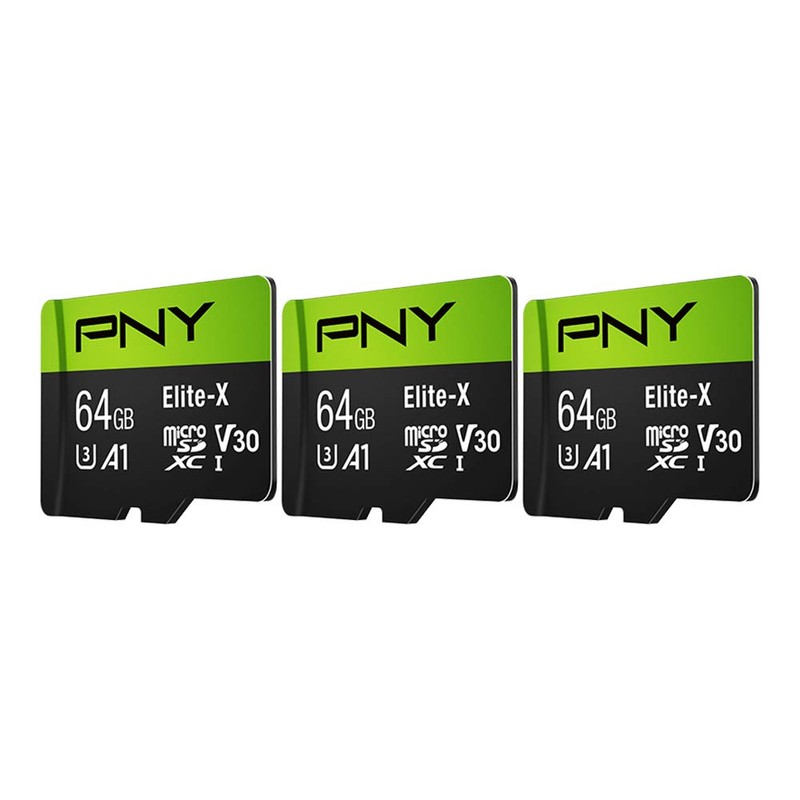 PNY Tarjeta de Memoria Flash Elite-X Class 10 U3 V30 microSDXC de 64 GB, 3 Unidades (Paquete de 1) - 100 MB/s, Clase 10, U3, V30, A1, 4K UHD, Full HD, UHS-I, Micro SD