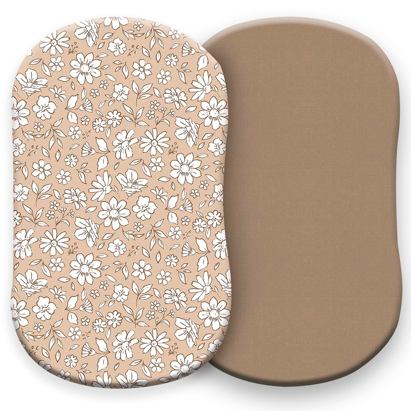 Pobibaby - 2 Pack Premium Bassinet Sheets for Standard Bassinets - Ultra-Soft Jersey Knit, Stylish Floral Pattern, Safe and Snug for Baby (Bassinet Sheets - Meadow)