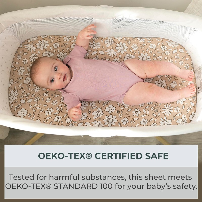- YOUR BABY DESERVES THE BEST: These bassinet sheets are an essential addition to your baby registry and make the perfect baby shower gift for moms you care about. For your peace of mind, our sheets are OEKO-TEX STANDARD 100 certified, ensuring they have been tested and proven free from harmful substances. Purchase with confidence knowing that if you're not satisfied with the quality of your purchase, you can rely on our satisfaction guarantee. Parenting is challenging enough; shopping for your baby should be easy, and we’re here to help.