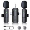 - 3-in-1 Universal Receiver: The wireless microphone with a 3-in-1 receiver eliminates the need to replace multiple separate connectors or interface cables. Compatible with Android smartphones, iPhones, laptops, cameras, etc. (Note: The 3.5mm connector on the receiver side is unsuitable for laptops as the 3.5mm audio connector on laptops does not support audio input.)