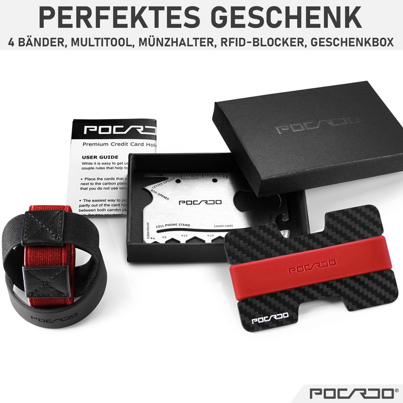 POCARDO Credit Card Holder with Coin Compartment, Multitool & RFID Blocker Card, Small Carbon Wallet, Chili Red and Deep Black, Minimalist