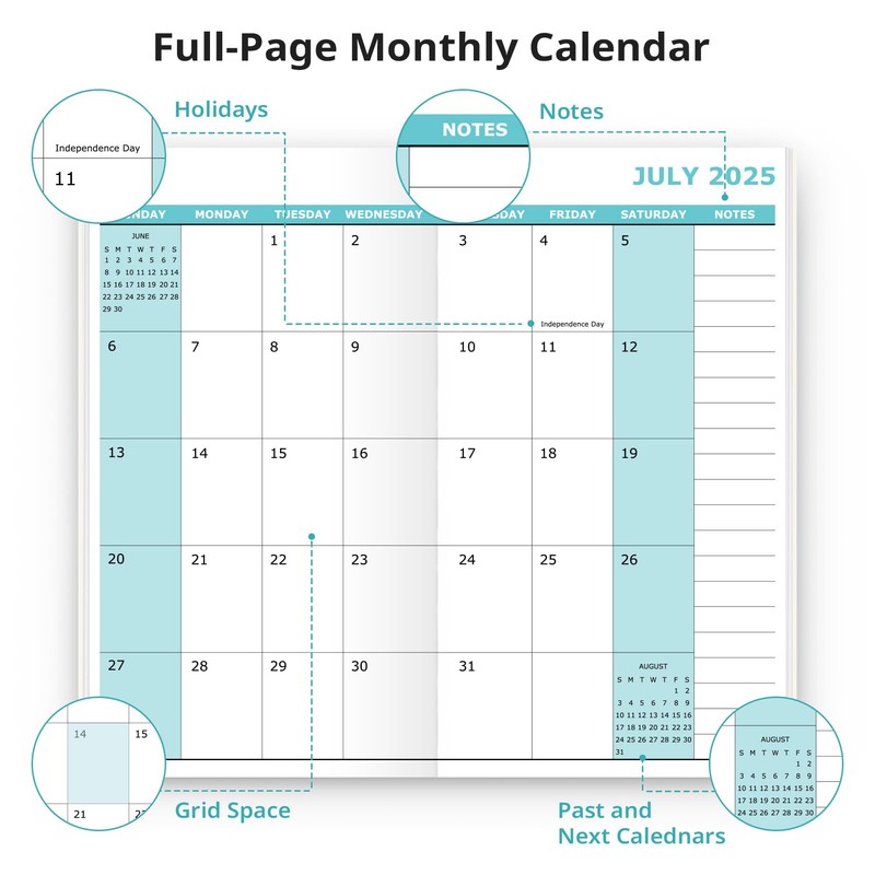 - Extra Features for Better Organization: Enjoy extra perks with special pages including a 4-year reference calendar, holiday lists, 7 contact pages, and 5 note-taking pages. Because who doesn't love a little extra organization and functionality?