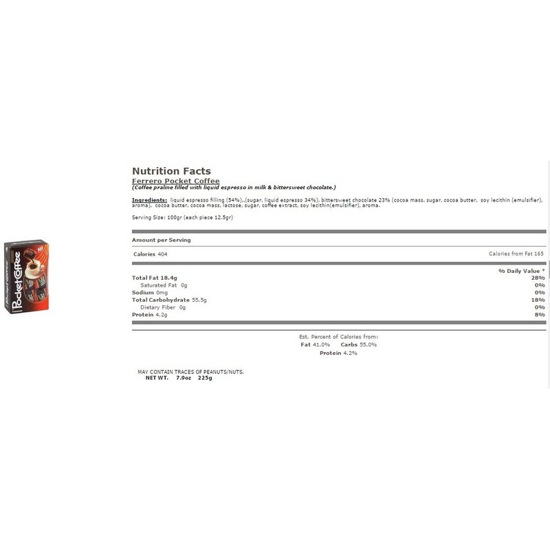 - 108 individually wrapped pieces of ferrero pocket coffee