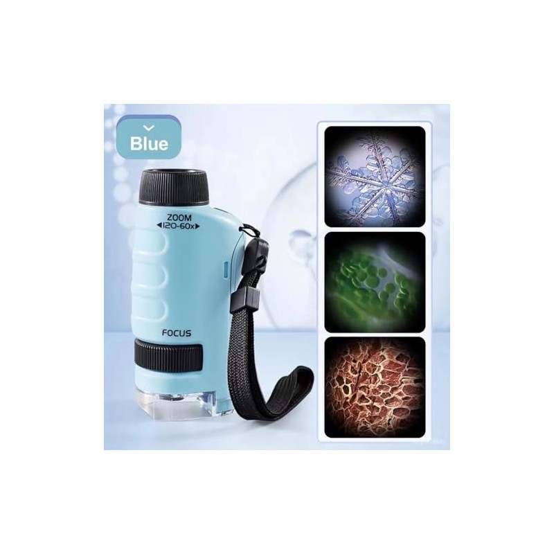 Pocket Microscope, 60x -120x, Portable Microscope for Kids with LED lights, Handheld microscope for Kids Student Adults Microbiological Observation Lab Study, Educational Kit