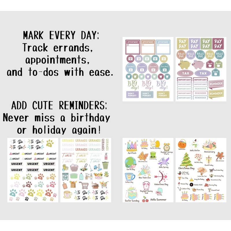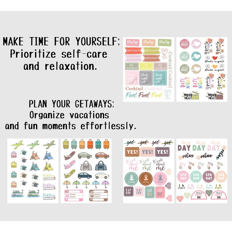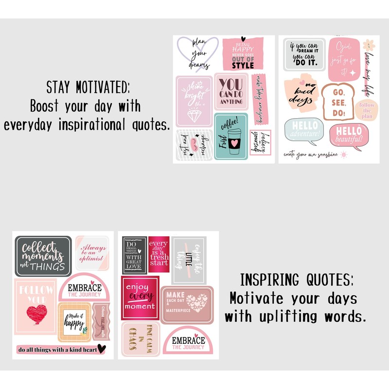 - ✔ 400+ Unique Planner Stickers – Get organized with over 400 beautifully designed stickers across 20 sheets, perfect for planners, journals, and calendars. Each set includes a mix of functional, motivational, and decorative stickers to keep you on track.