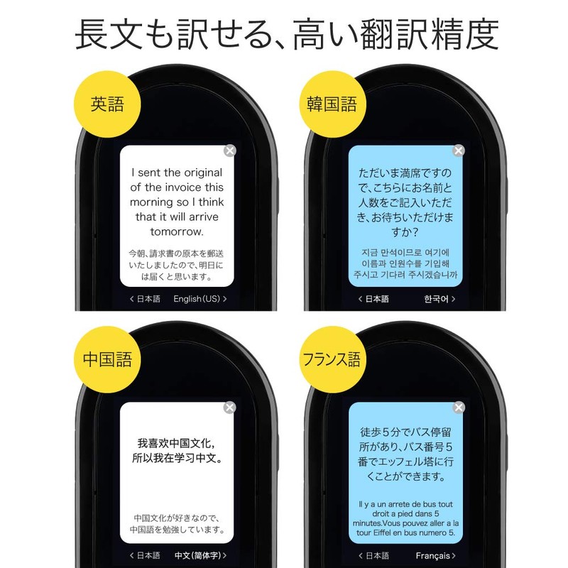 Can be used immediately in 105 countries and regions. Open the box and start using it right away. No special settings are needed, connect to the cloud for translation. The built-in global communication SIM is compatible with 105 countries and regions, without having to buy or change settings for each destination.
