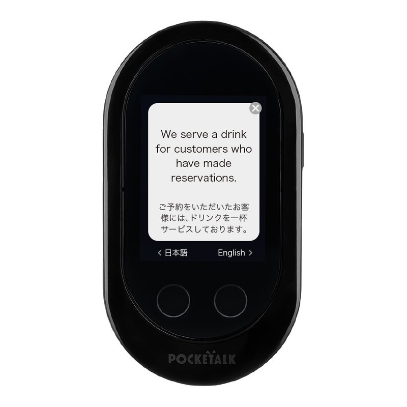 - Note: (1) Operation with only SIM card specified by Source Next is not supported. (2) Internet environment required. (3) This product is prohibited for commercial use such as sales, rentals, or business use of two or more of one company is prohibited, so please contact us via this form (http://pocketalk.jp/business/#rental_form). (4) Be sure to read the included instruction manual (English language not guaranteed). (5) The translation results may vary every time. (6) 12 months manufacturer warranty