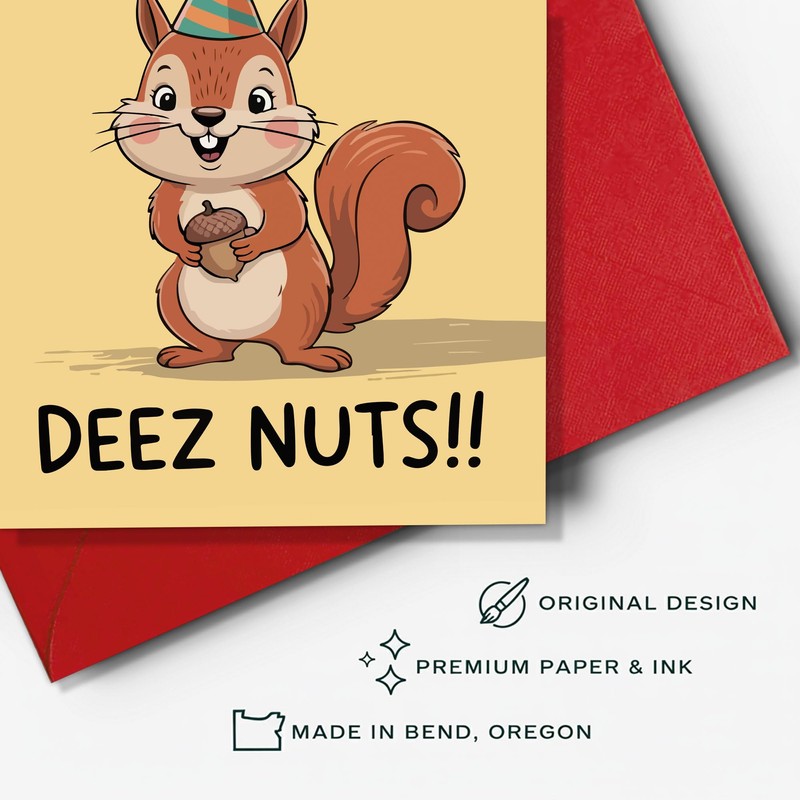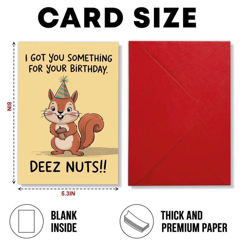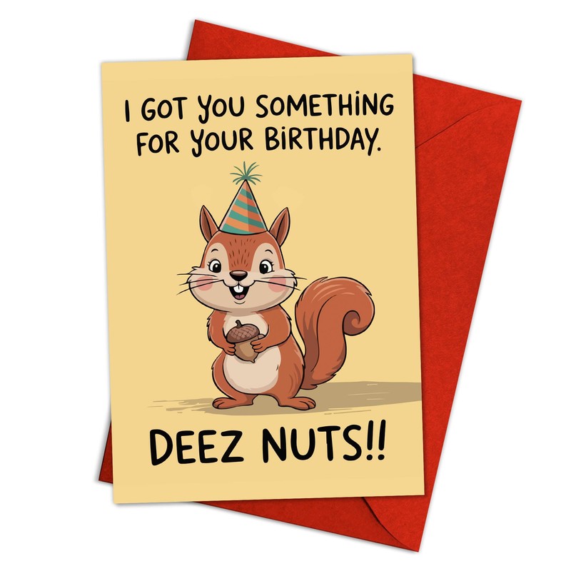 Podagree Funny Birthday Card – ‘Deez Nuts’ Squirrel Joke – Hilarious Birthday Greeting for Friends, Family, Him or Her – Includes Envelope – Blank Inside for Personal Message -8x5.3 Inch (GC37)