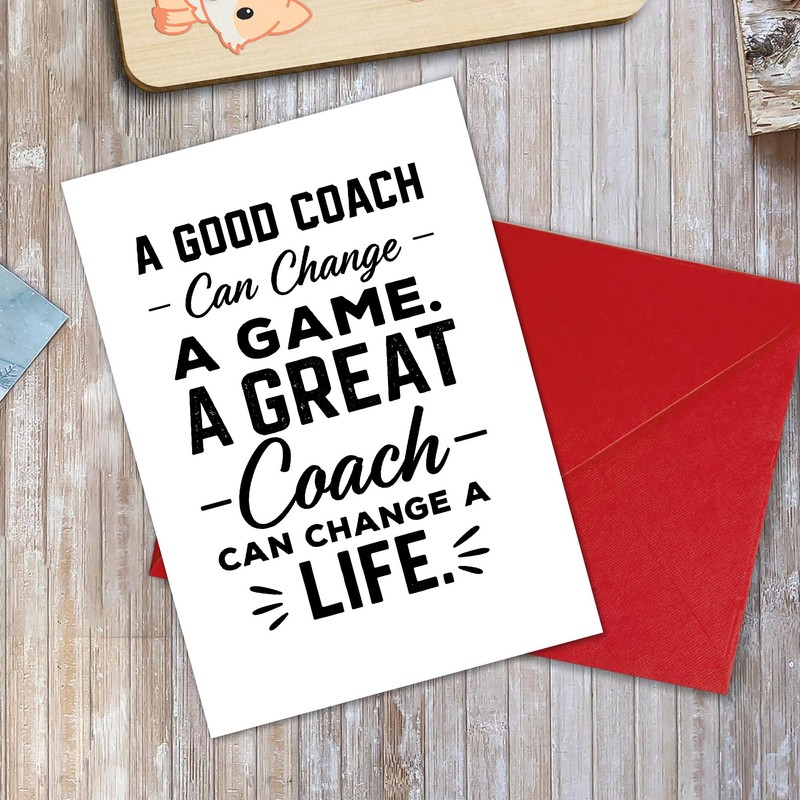 Podagree Thank You Card for Coach Men Women, Ideal Basketball Wrestling Soccer Retirement Birthday Gifts, A Good Coach Can Change A Game And Life Single 5.3''x 8'' Folded Card with Envelope