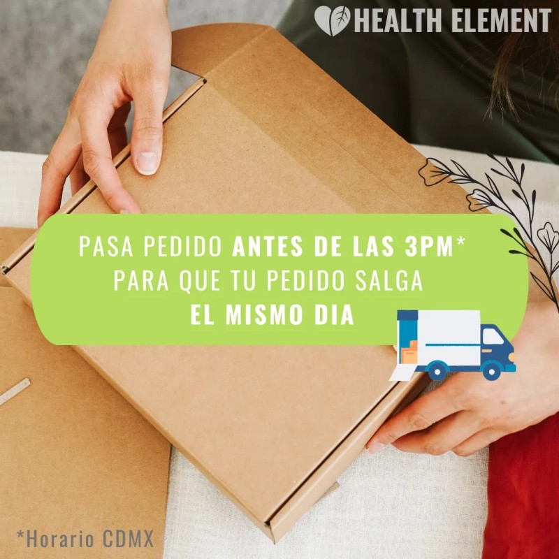 🔔 Rápido y Confiable: En Health Element, nos aseguramos de que tu pedido salga el mismo día si lo realizas antes de las 3:20 PM, hora de Ciudad de México. ¡La naturaleza no puede esperar!