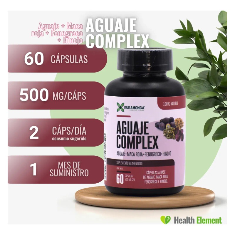 Poder Botánico para tus Curvas: Aguaje Complex con Fenogreco, Hinojo y Maca Roja (60 Cápsulas)