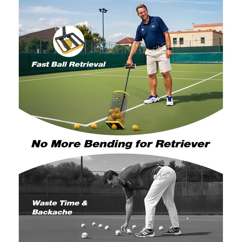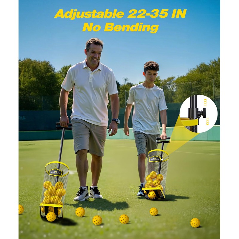 - No more bending, Save Back & Knees: Say goodbye to back and knee pain. The upgraded tennis ball picker features a 22–35" adjustable handle for easy, joint-friendly ball pickup. Great for all ages, adults and youth can find their ideal height. Perfect for pickleball and tennis. A must-have for families and frequent players